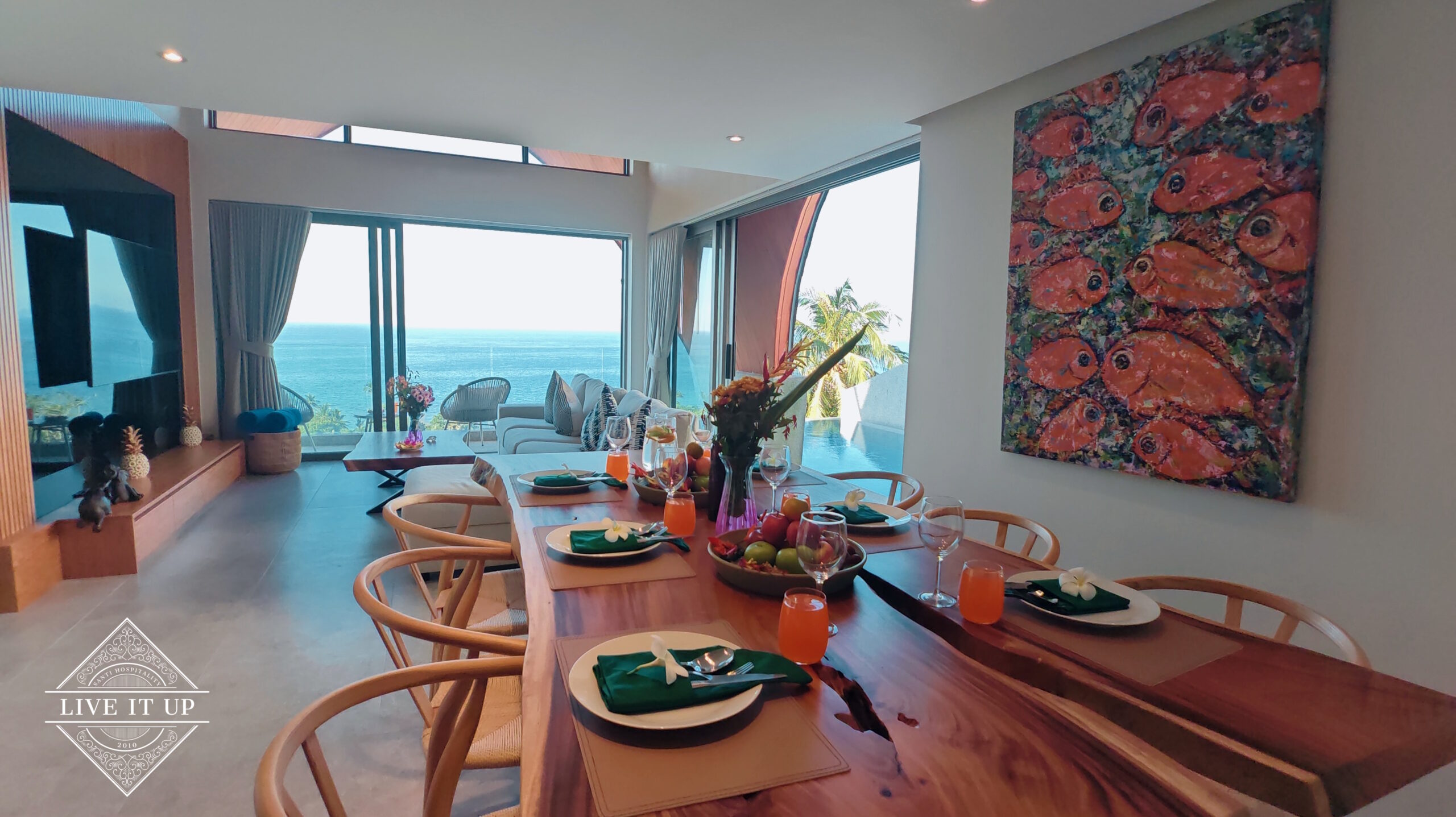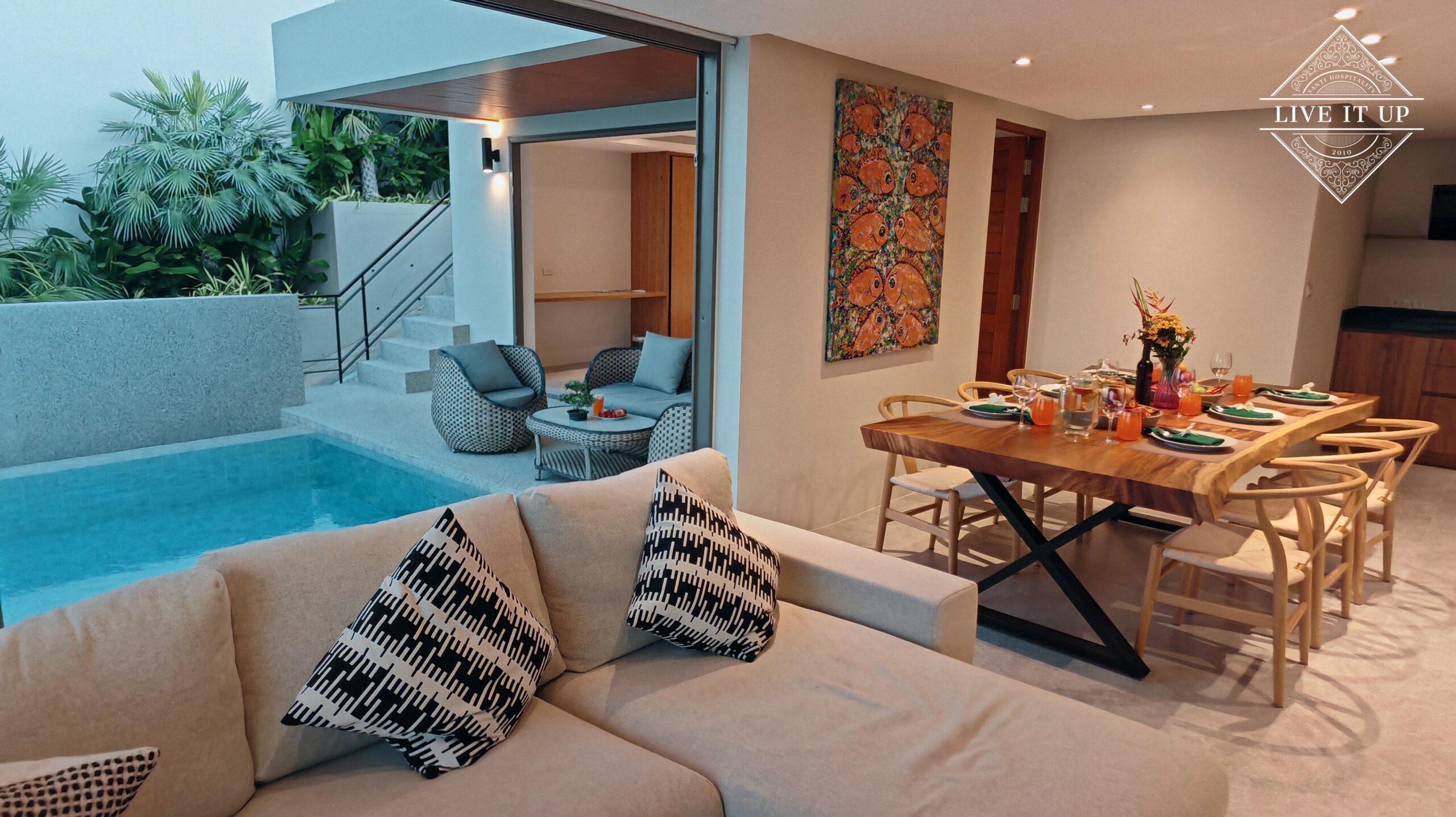 While peaceful, the villa is conveniently located close to key points of interest. Samui Airport is a 15-minute drive away, Nathon Pier is just 8 minutes from the villa, and both Tesco Nathon and Fisherman’s Village can be reached in under 10 minutes. Chaweng Beach and Bangkok Hospital are approximately a 20-minute drive away.
