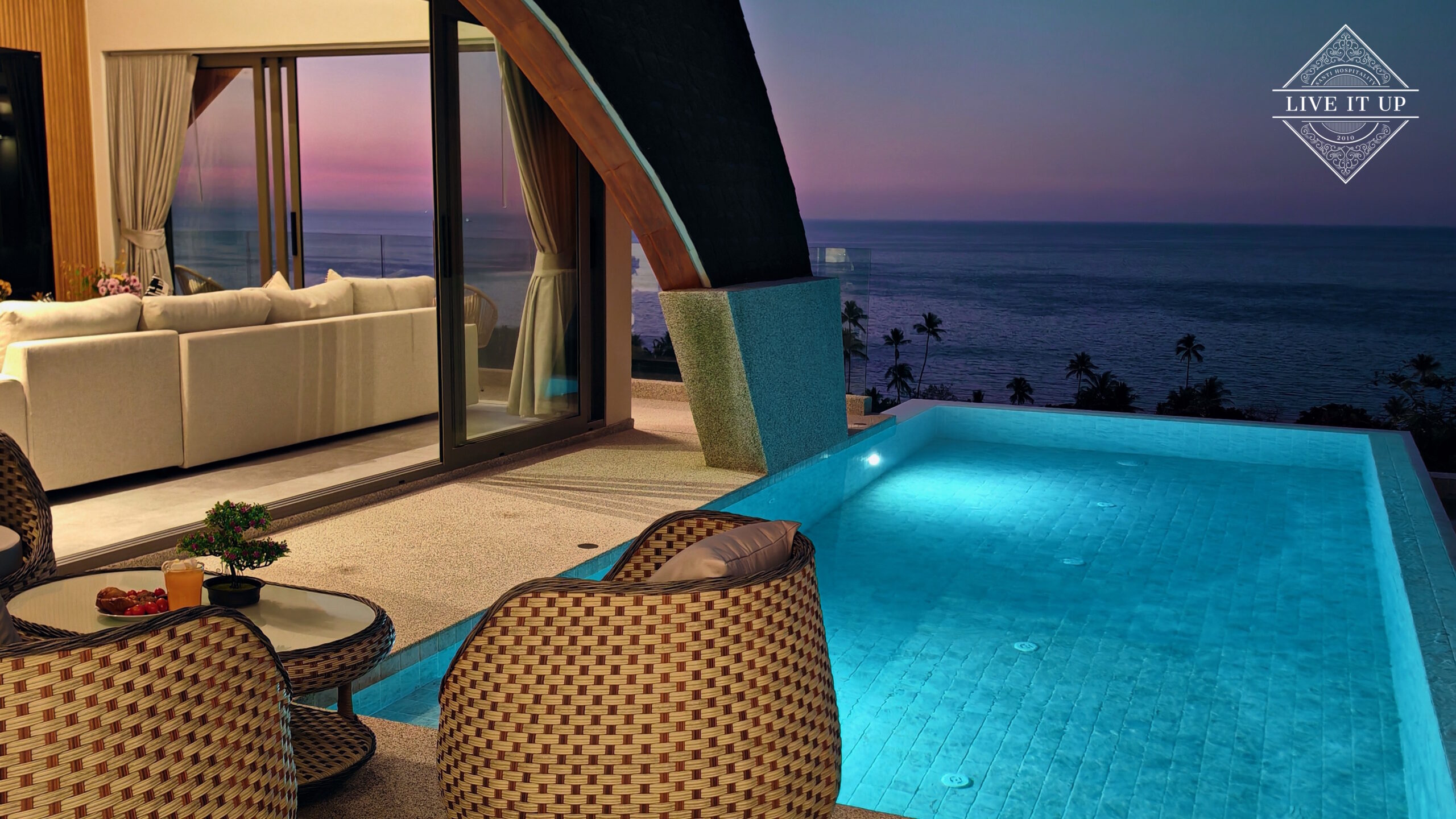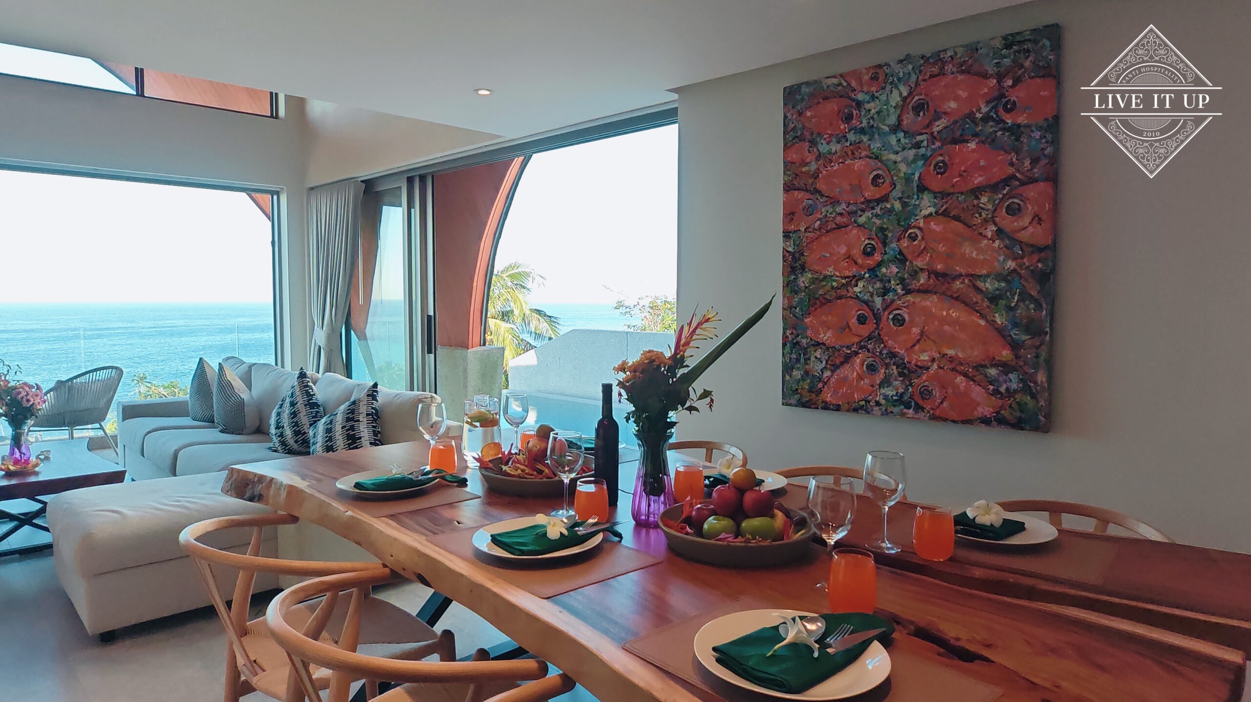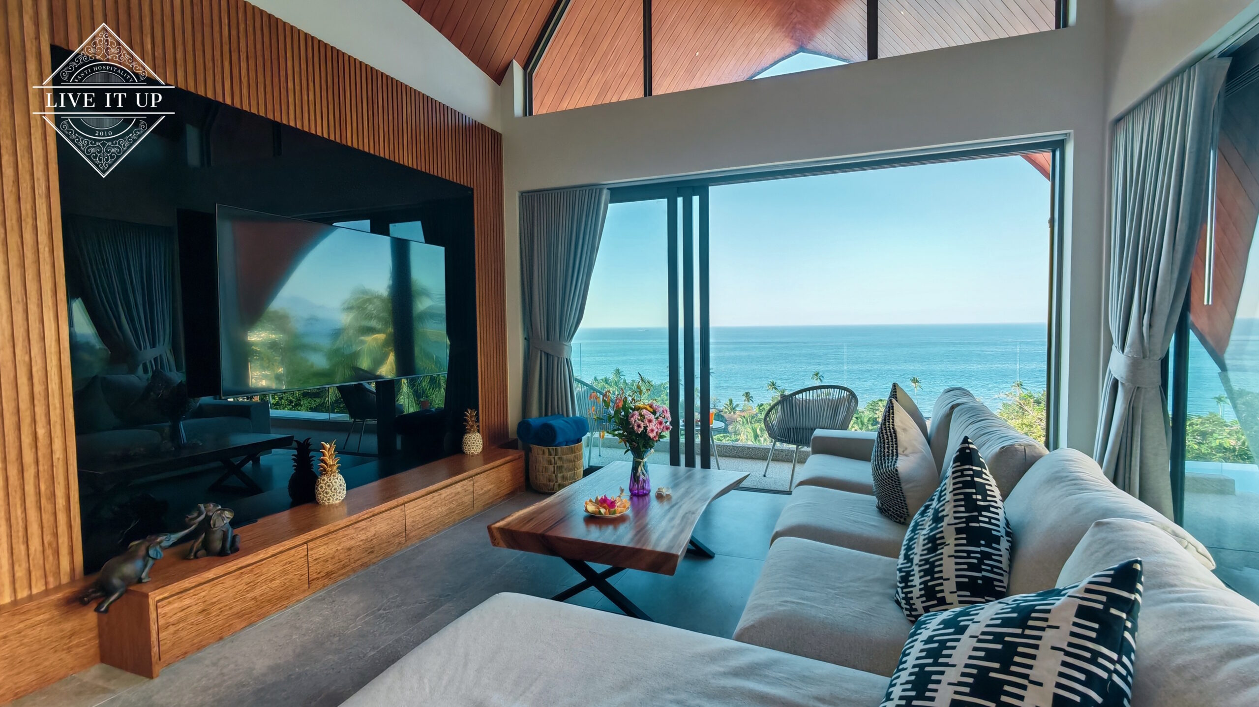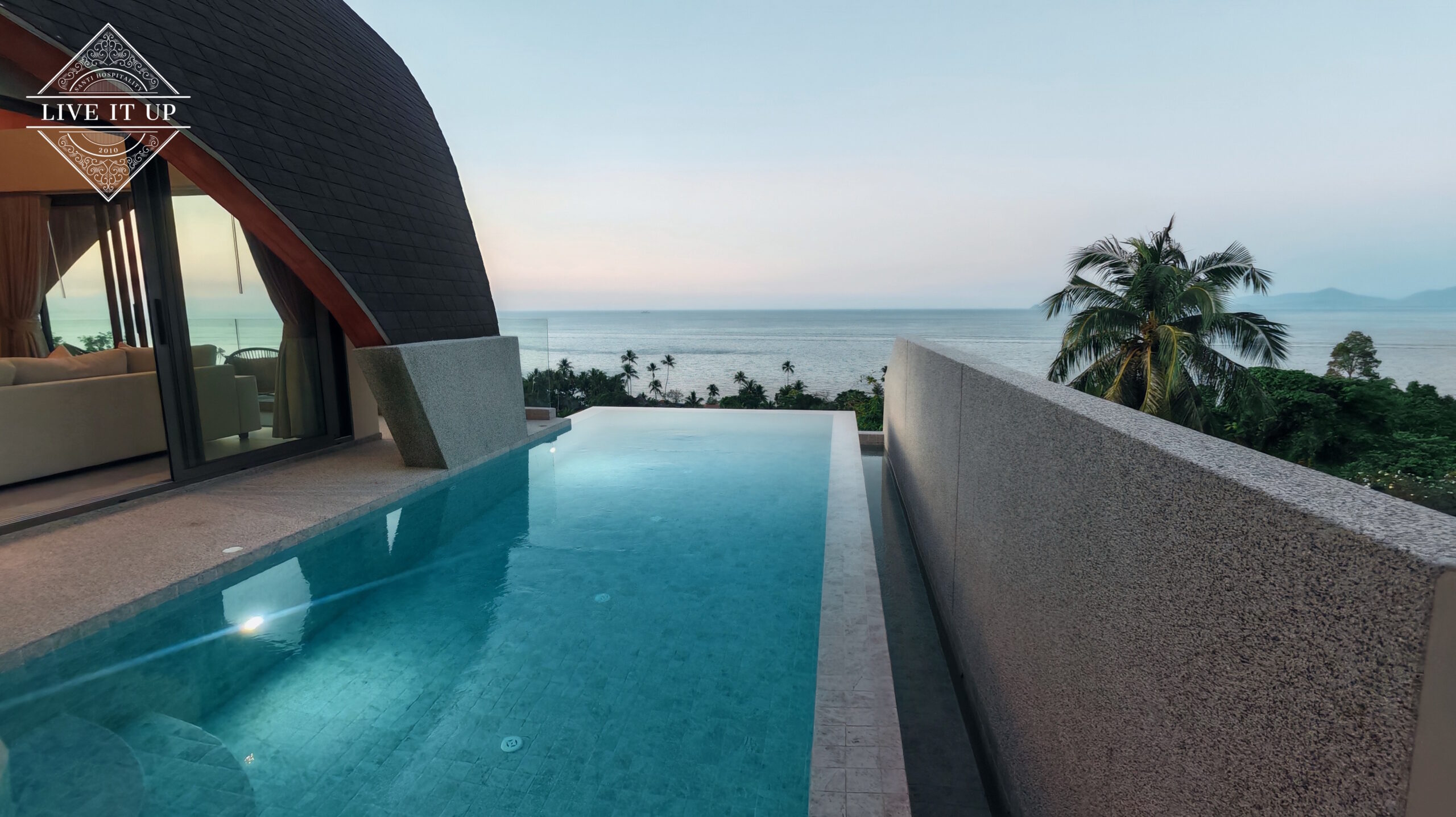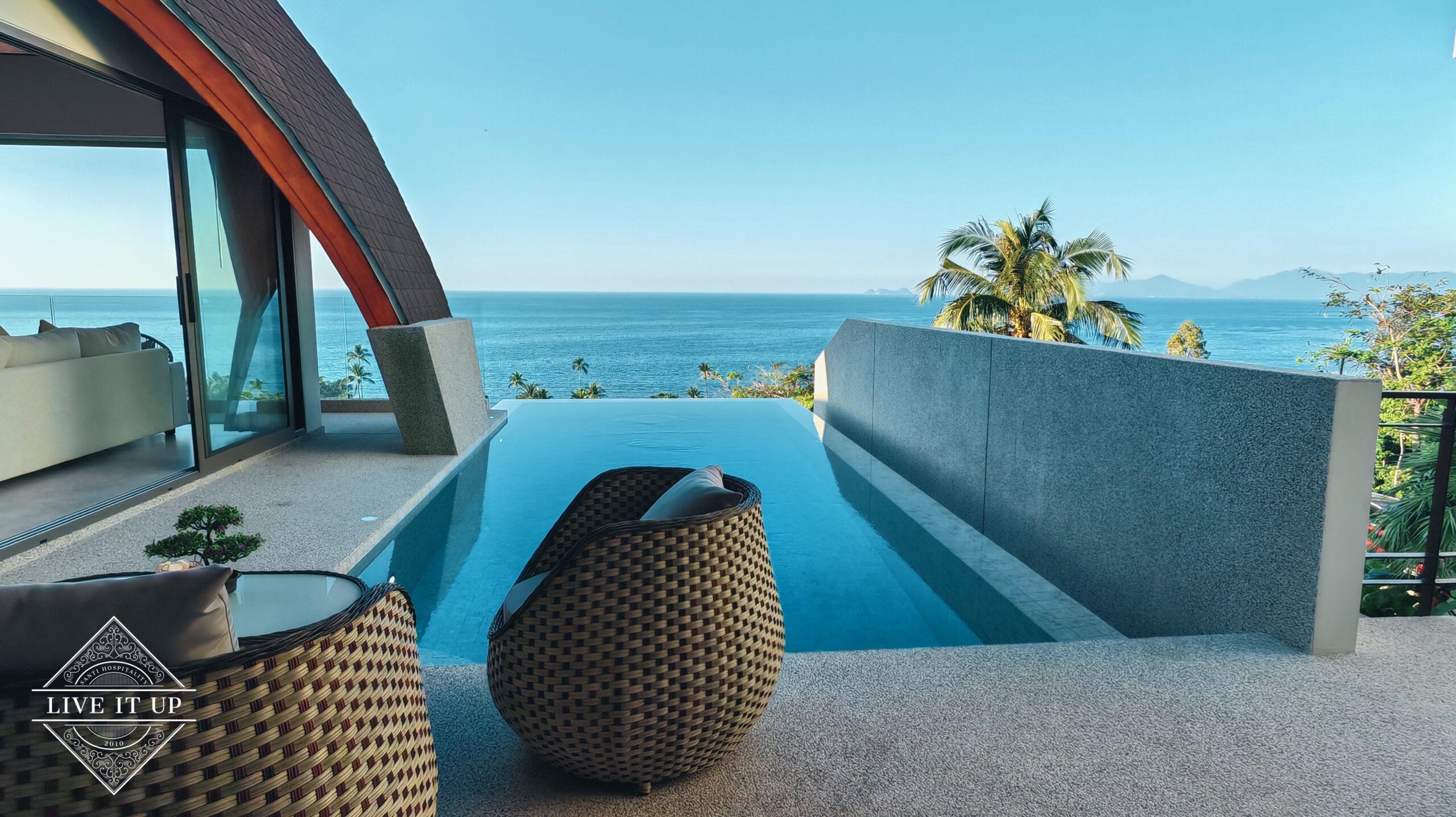Welcome to Santi Pura Villas, a serene hillside retreat overlooking the turquoise waters of the Gulf of Thailand, with breathtaking views stretching across to Koh Phangan and the Angthong National Marine Park. Set just 200 meters from Bang Por Beach, this stylish villa blends luxury, tranquillity, and natural beauty—perfect for couples, families, or friends seeking an elevated island escape.