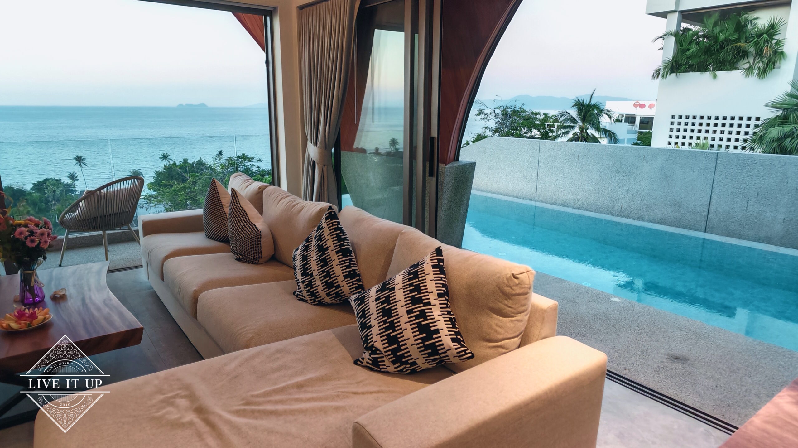 Santi Pura Villas sit in one of Bang Por’s most picturesque hillside settings, with gentle slopes leading down to the beach. Bang Por Beach stretches over four kilometres of soft white sand, framed by palm trees on one side and calm turquoise waters on the other. Its peaceful atmosphere sets it apart from more crowded parts of the island, offering guests a tranquil escape without noisy nightlife nearby. The area is also known for its excellent seafood restaurants, many of which are located directly along the beachfront and offer some of the best local cuisine on the island.