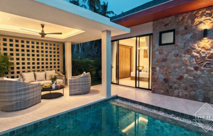 The villa is designed in tropical Thai-Balinese styling, with premium quality build and finish and superior standards of luxury and comfort, to provide luxury living at its best. Santi Tara Villas are located on a tranquil, private, tree-lined street, just a 5-minute drive to the famous Lamai beach. This project infuses modern inspiration with tropical island living, taking affordable living to the next level. Within the secluded serenity of Santi Tara Villas, the project’s up & coming location allows for both privacy and proximity to nearby shopping venues, international airport, sports facilities, nautical activities, and famous Lamai Beach.